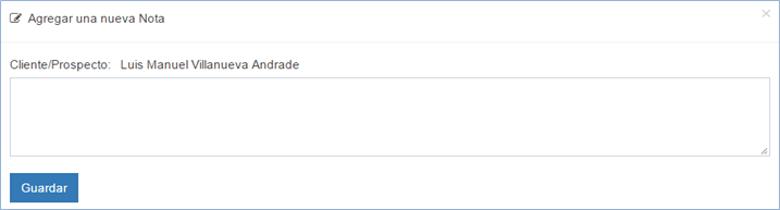 La opción notas es para escribir lo que se desee del contacto seleccionado. Para ello, dé clic en notas, escriba el texto y presione el botón guardar.