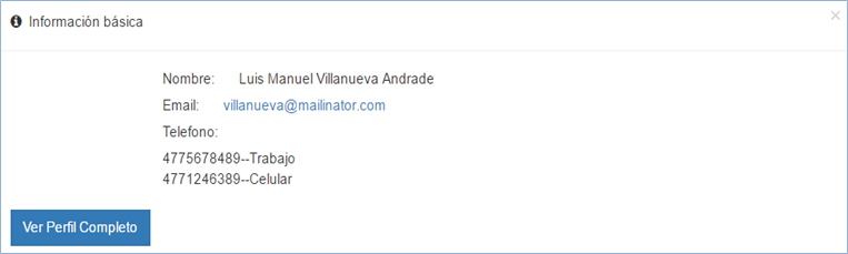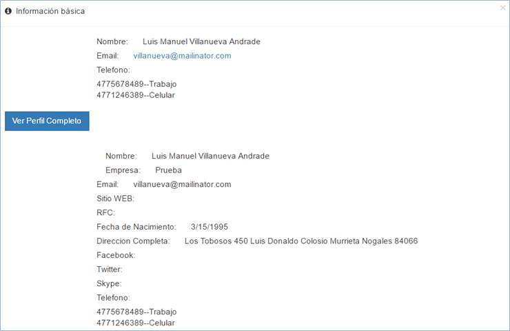 Si presiona el botón ver perfil completo, el sistema muestra la siguiente pantalla en la que podrá ver datos adicionales del perfil del contacto.